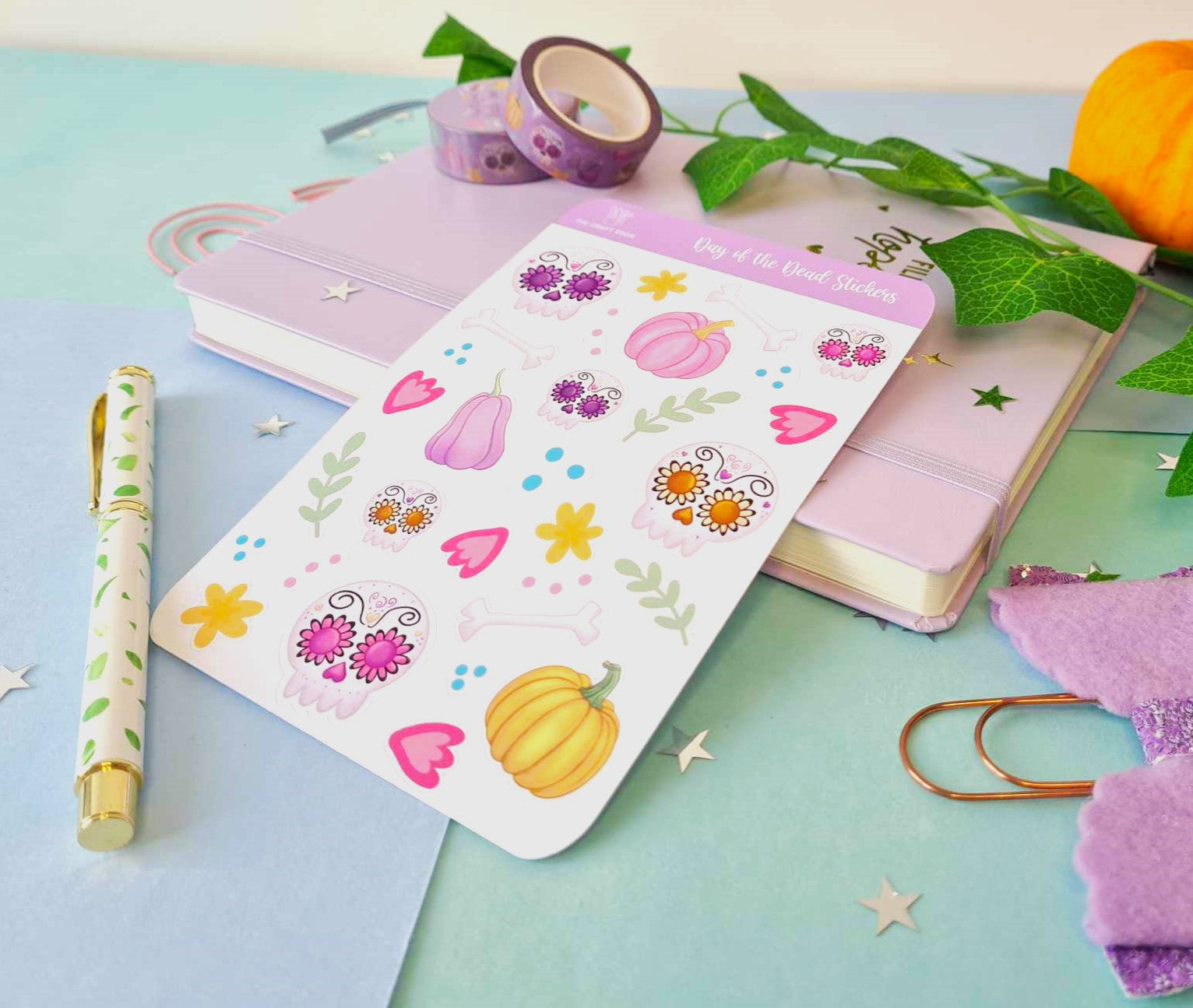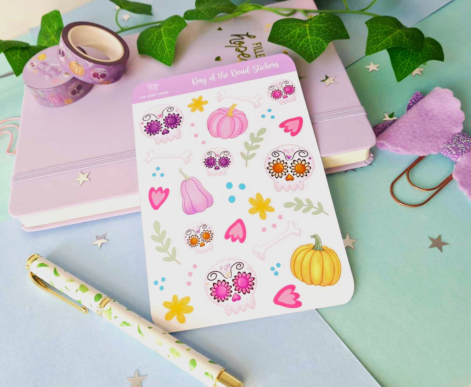 A lovely sheet of Day of the Dead (Día De Los Muertos) illustrations, these are great for Scrapbooking and will make your planners, diaries & journals look very pretty or a great stocking filler.
